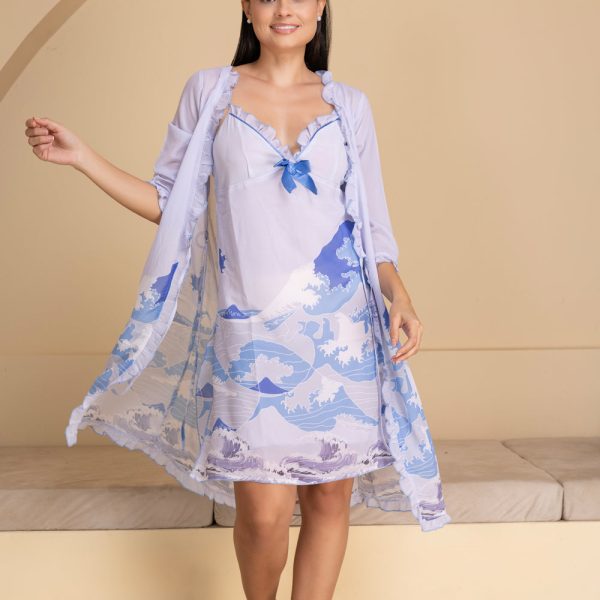 | Content | A border print chiffon nightgown set features a lightweight and flowing design, often adorned with a decorative border along the hem or neckline. Here are some key points to consider: